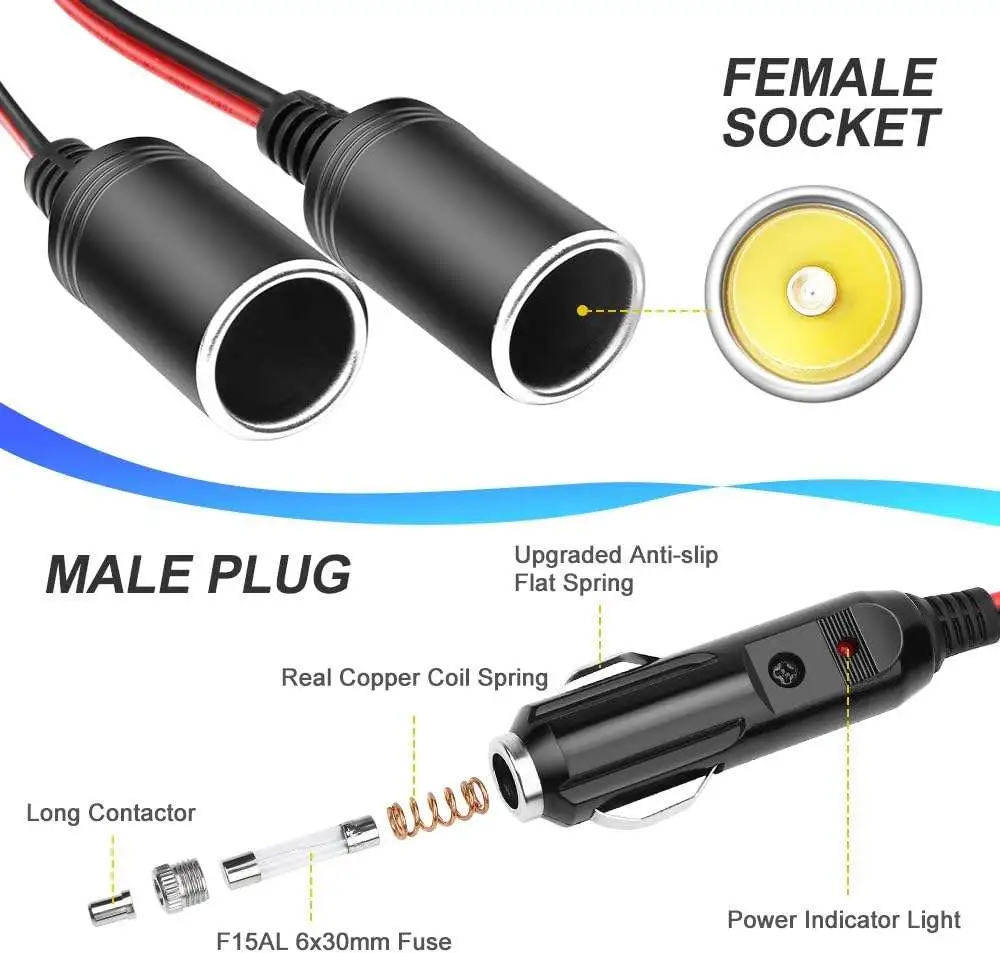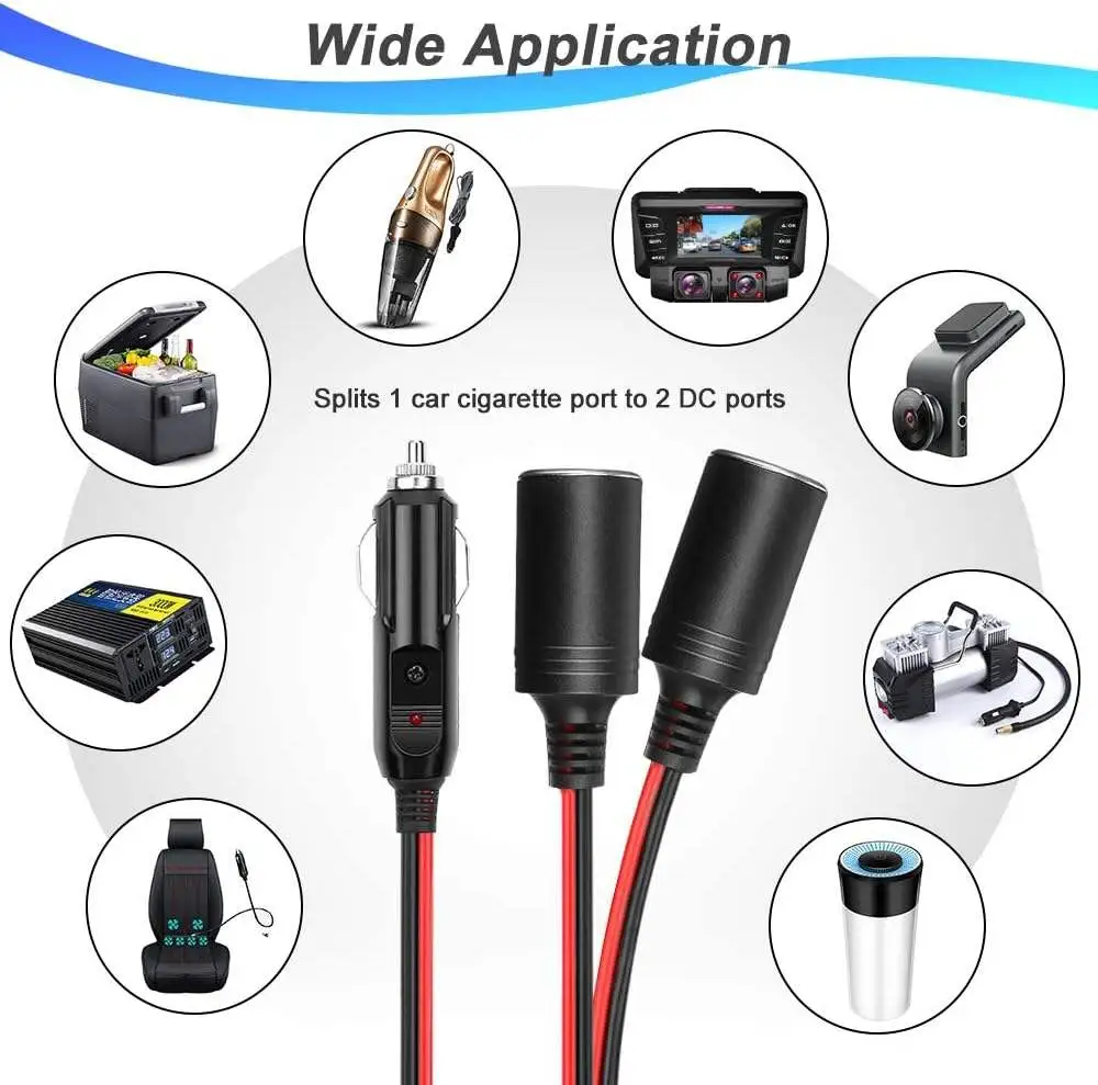 Cigarette lighter splitter cable is made of high quality copper material which can provide stable current for your devices.