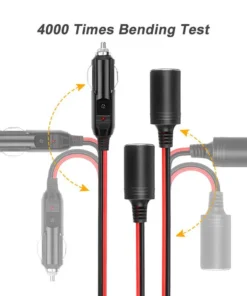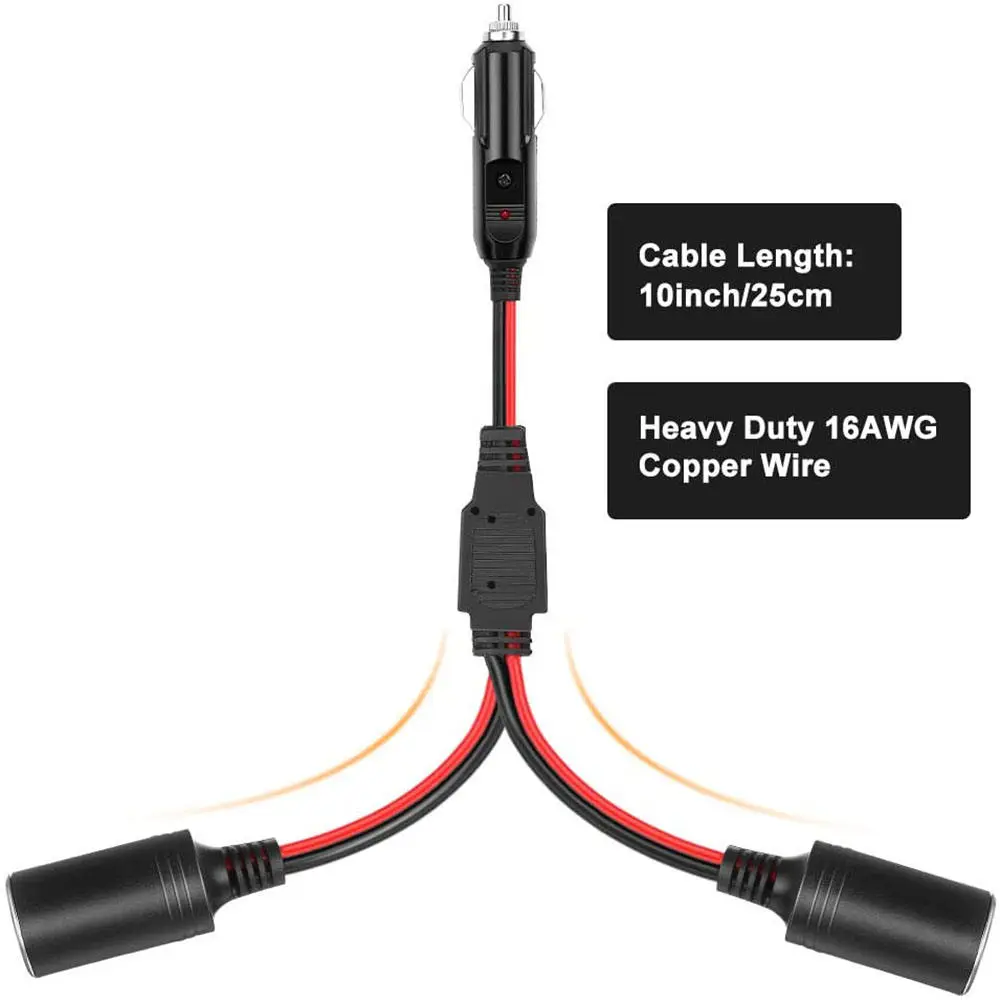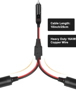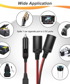 1. CIGARETTE LIGHTER SPLITTER ADAPTER – Splits 1 car cigarette lighter port to 2 DC ports, 1 cigarette lighter male plug to 2 female sockets. A 2-Way cigarette lighter splitter adapter extension cord allows you to connect two of your 12 volt devices at the same time. Cable Length: 10 inch/25 cm.