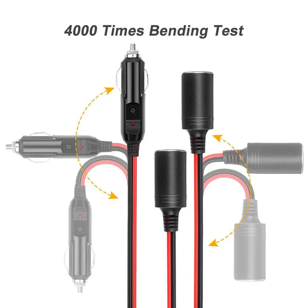 2. MULTIPLE SAFETY PROTECTION – This heavy-duty cigarette lighter extension cable uses SPT-2 16AWG pure copper wire to provide stable current for your devices. Double PVC jacket, best insulation effect, 105 °C heat resistance. Male plug built-in replaceable 15A safe fuse, timely cut off the current to prevent the car splitter and your devices from over-current, over-voltage, over-load, over-heating and short-circuit.