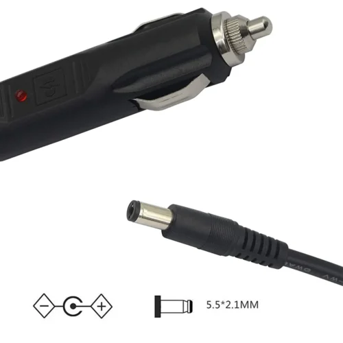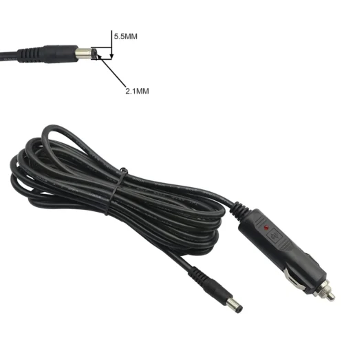 2. 12V DC 5.5*2.1 car cigarette lighter Safe and reliable;Built-in replaceable fast-acting 10A fuse (model F10AL250V) to protect your car circuits and equipment. Cigarette lighter plug with LED light: LED indicates whether you are working.