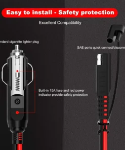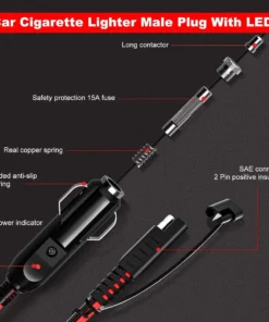 * Easy to Install – This is a standard cigarette lighter plug, applying to almost all models of cigarette lighter sockets. Excellent compatible SAE ports, quick connection The red wire is positive, the black wire is negative