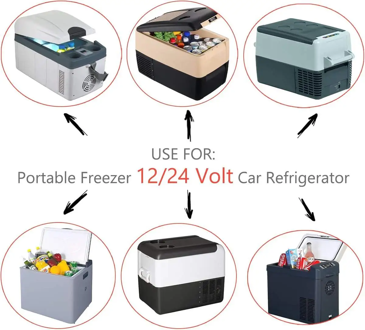 1. Wide Application: DC power cord cable for 12V/24V portable car refrigerator,apply to the brands for Dometic, Alpicool, ARB, ICECO, Setpower, Aspenora, JoyTutus. 16AWG cord for 12v cooler and electric cooler for Car, RV, Van, etc.