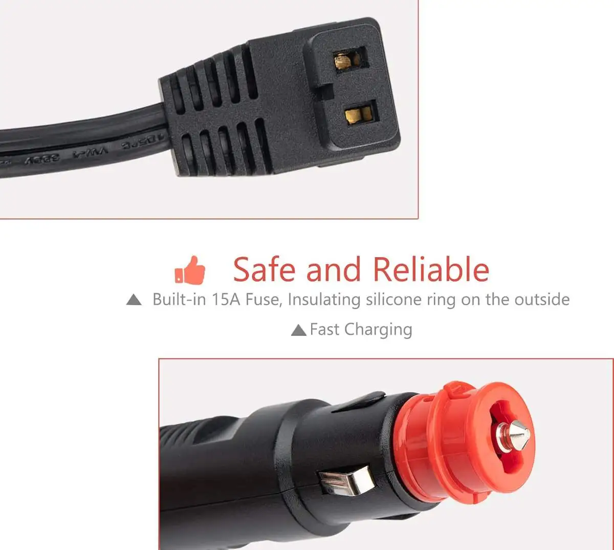 3. Safe and Reliable: The DC power cord undergo multi-test to ensure safe and keep dangerous away. Built-in 15A fuse, insulating silicone ring on the outside DC power cord cable for 12V/24V portable car refrigerator