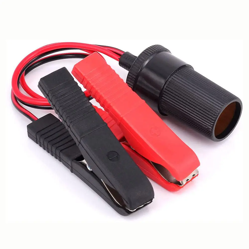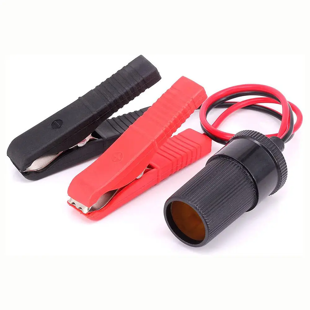 12V Battery Alligator Clamp Car Cigarette Lighter Socket Female Adapter Cigarette Splitter Extension Cord