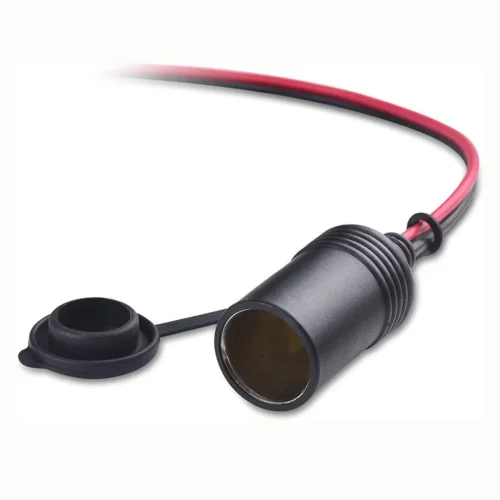 Weather-resistant and rugged design of 12V socket to battery terminal cable includes a 15 amp fuse in a weather-resistant housing and 16 AWG zipcord wire, rated up to 300V with a 60C/140F operating temperature.