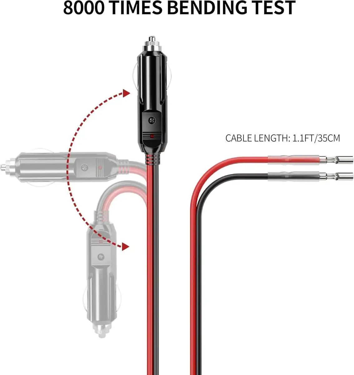 * [Easy Installation] Manufactured with heavy-duty 16 AWG gauge copper wire leads, the red wire for positive, black wire for negative, suitable for almost all models of cigarette lighter sockets. Cigarette lighter plug already soldered with electric iron