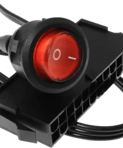24-Pin Female ATX PSU Power Supply Starter On/Off Switch Jumper Bridge with Braided Cable and Red Light