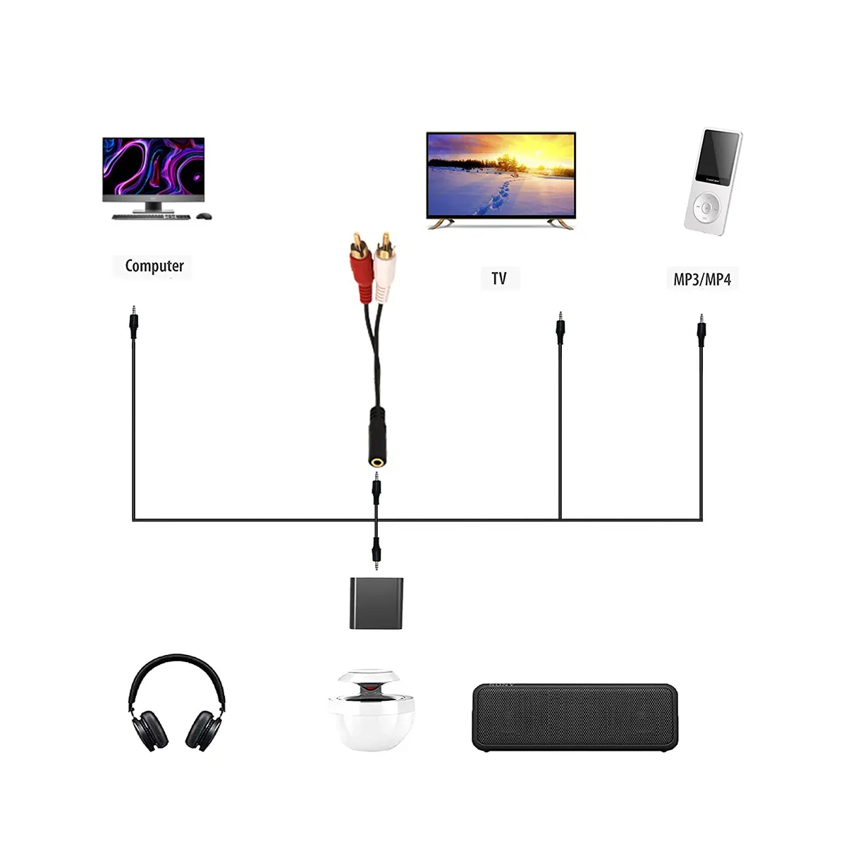 For TV, AV receiver, amplifier, projector, radio, car audio, stereo system, Hi Fi audio, computer sound, recording equipment, speaker and more with 2RCA plug.