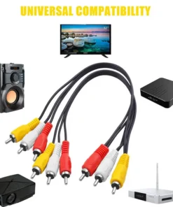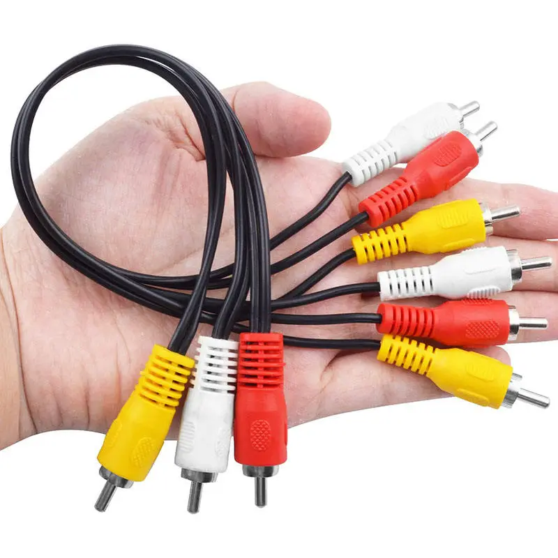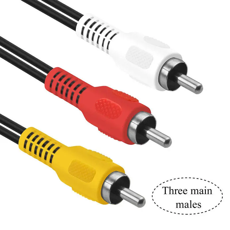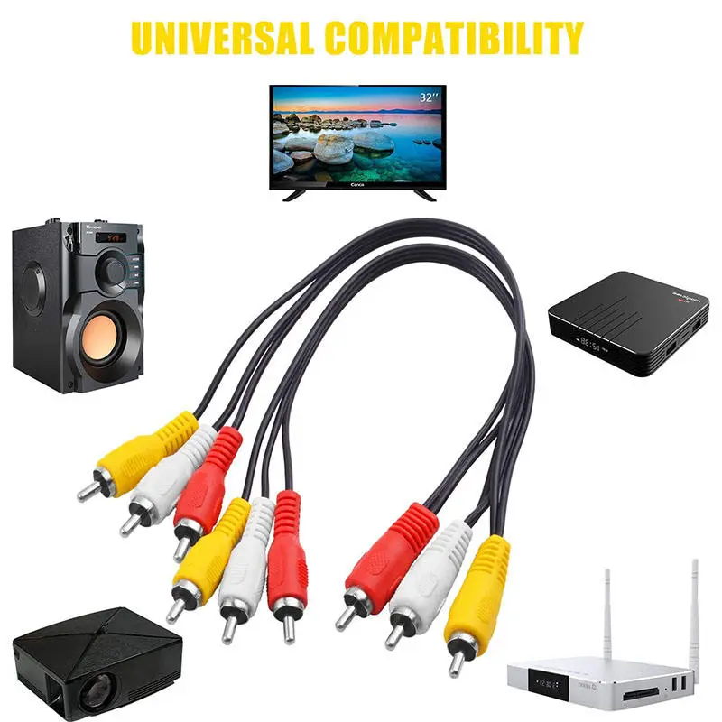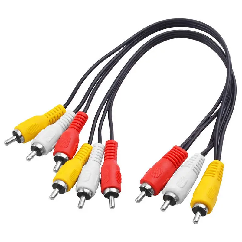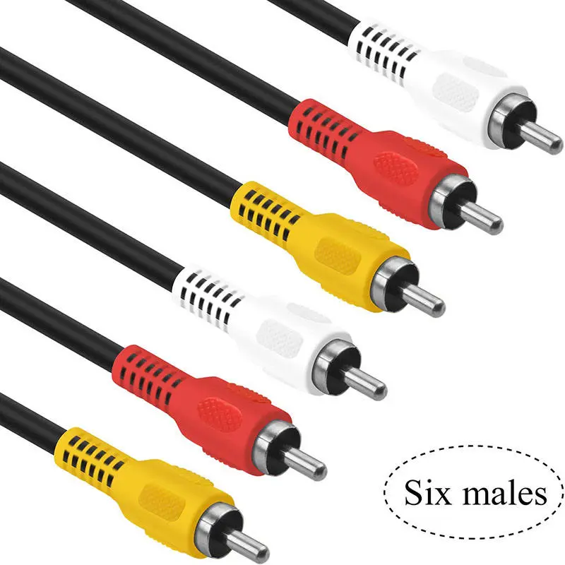 3 RCA male to 6 RCA male AV cable. Standard RCA Video, Audio R-&-L (yellow-red-white) connectors. Used to connect RCA audio/video devices such as TV, DVD, etc.