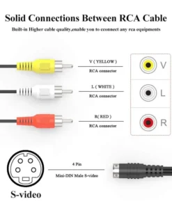 4.This cable is applicable for the connection with DVD, TV, HDTV, CD player, VCR, PC, Laptop TV and other devices with 4 pin S-video connector