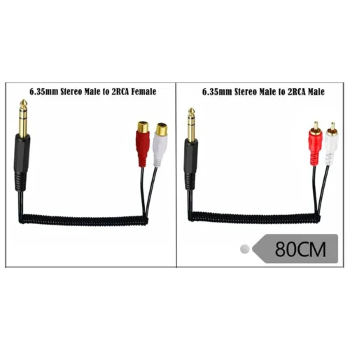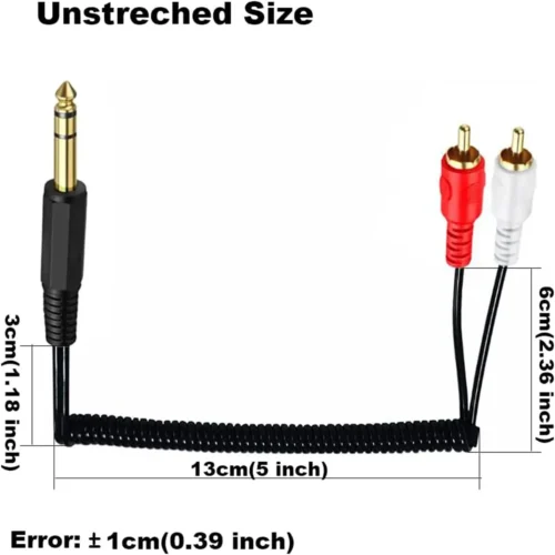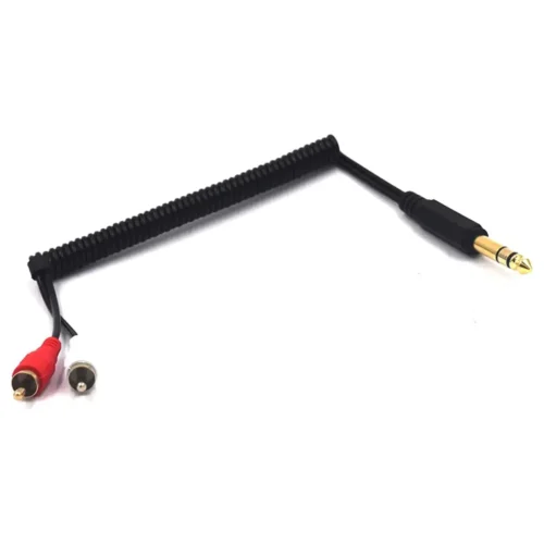 6.35mm TRS Male to 2RCA Male Stereo Audio Coiled Spiral Cable