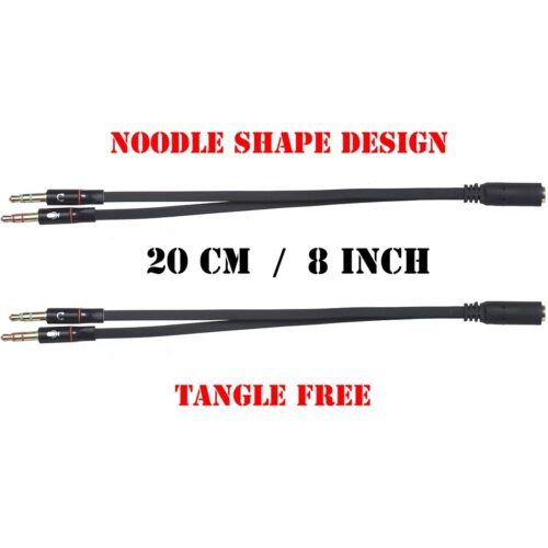 Audio Y Splitter 3.5mm Female to 2 Male Mic Headphone Adapter Microphone Earphone Split Flat Cable