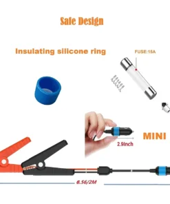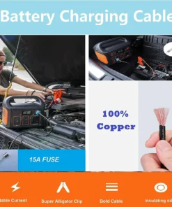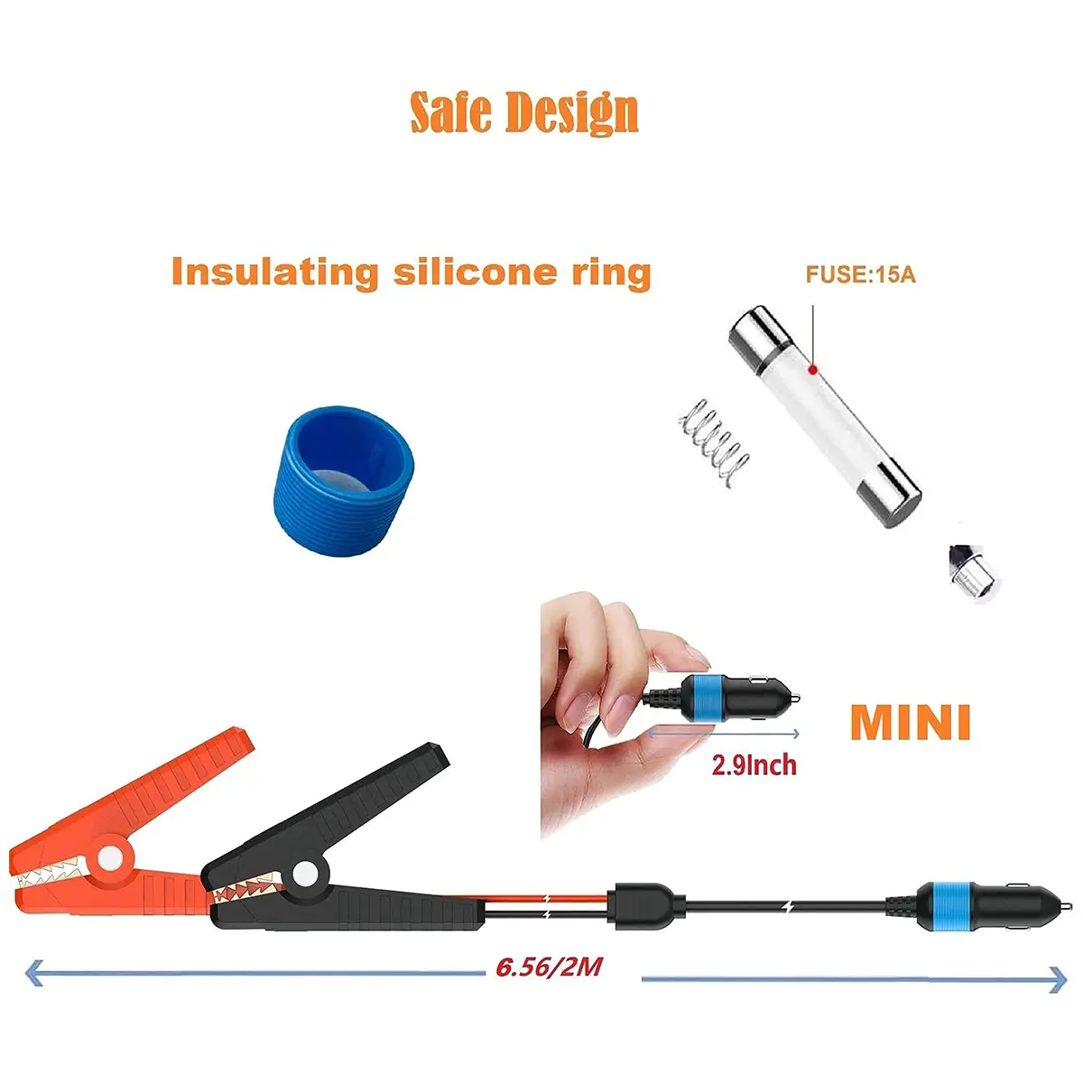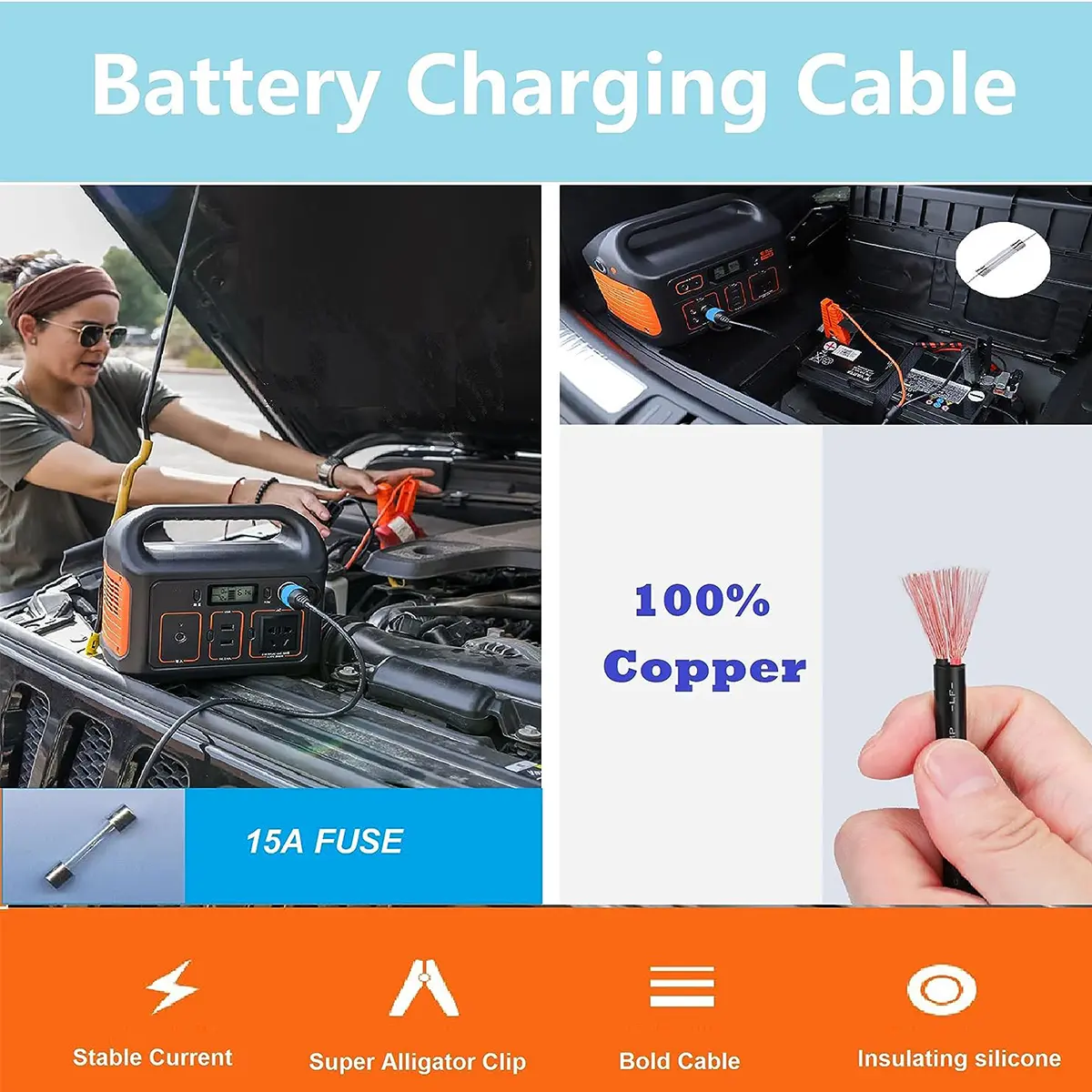 2. 12V/10A Car Battery Charging Cable with Alligator Clips. 12 AWG, 100% Copper Wire. Insulation Protection: NO Exposed Metal, Safety in Use.