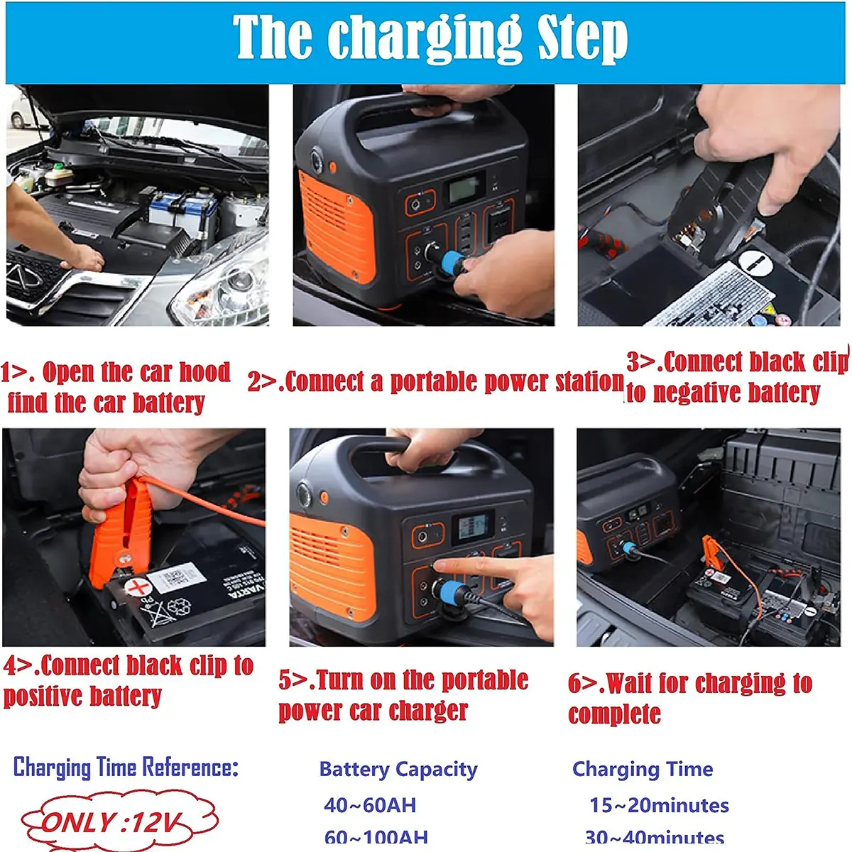 Automobile Lead-Acid Battery 12V Cigarette Lighter Plug to Alligator Battery Clamps for Car Battery Portable Power Station