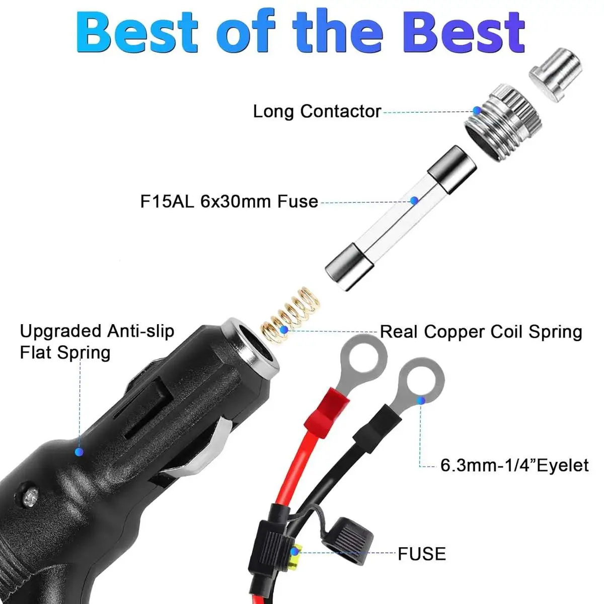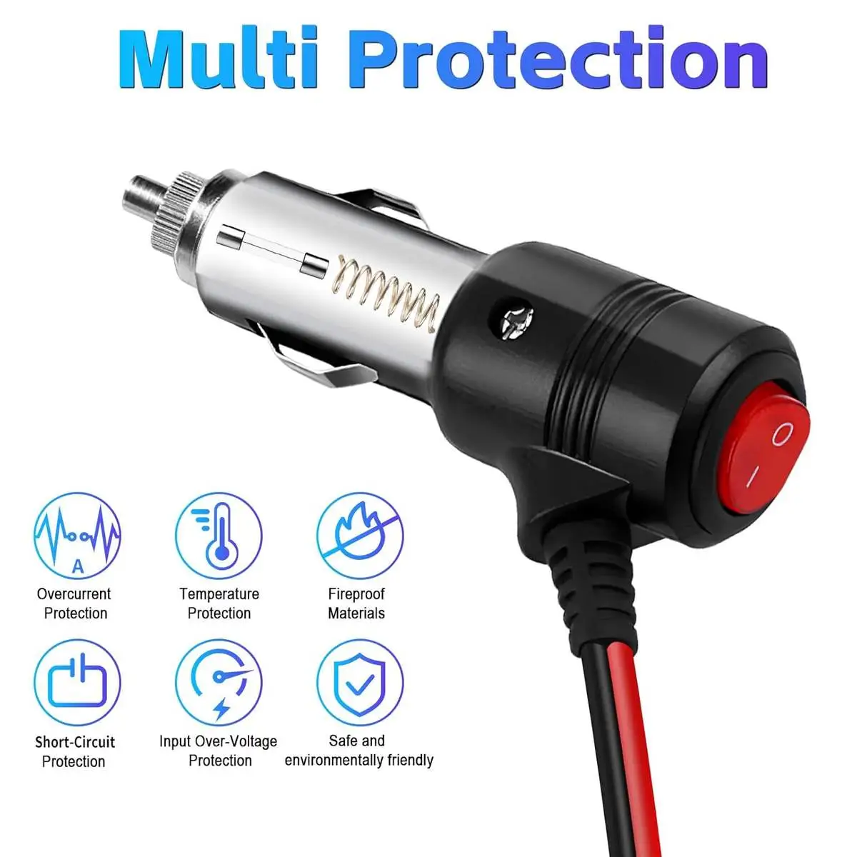 * Safety protection: When you press the car lighter adapter ON OFF switch, the built-in indicator light will light up, indicating that the power is successfully connected. Built-In fuse 15A cigarette lighter plug for overload protection.