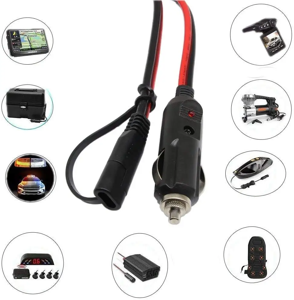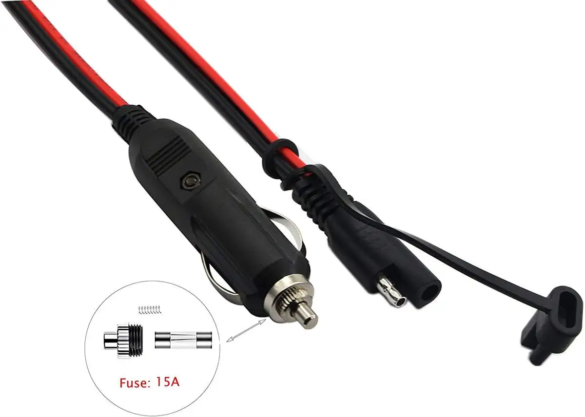 Cigarette Lighter Plug to Waterproof SAE Battery Charger Cable