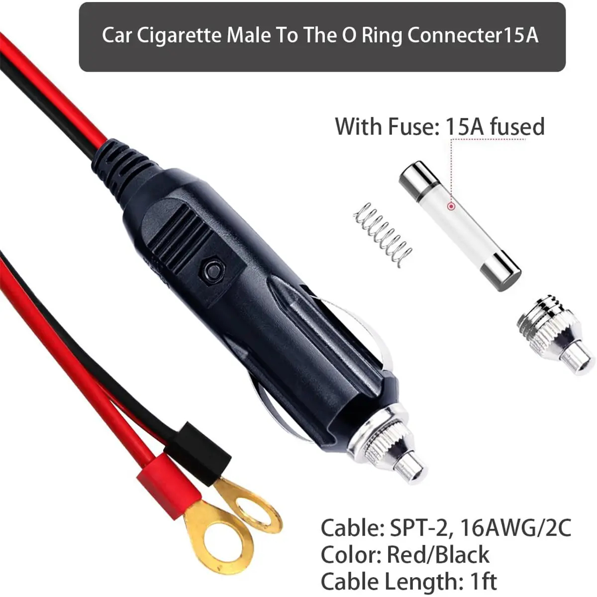 Cigarette Male Lighter to O Ring Terminal Harness Extension Cable for Car Inverter Air Pump Sprayer Compressor and DIY