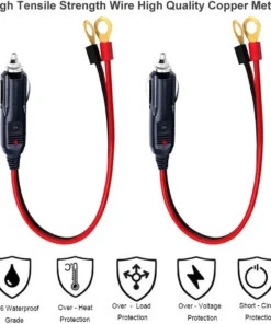 3. Suit for a Wide Range of Voltage: This cable be used for all kinds of DC 12V-24V battery charge with ring terminal, like inverter, air compressor, radio, ATV sprayer, inflator and other 12V devices with the ring terminal connector.