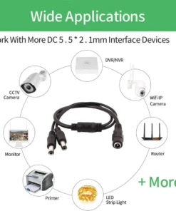 2. This 1 to 2 DC 2.1mm x 5.5mm Splitter cable power up easily 2 CCTV cameras, led strips with 1 power adapter