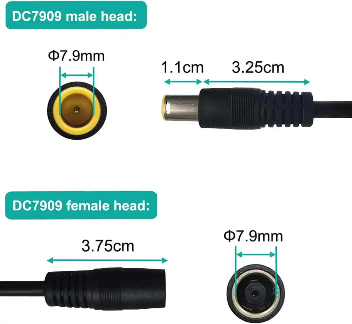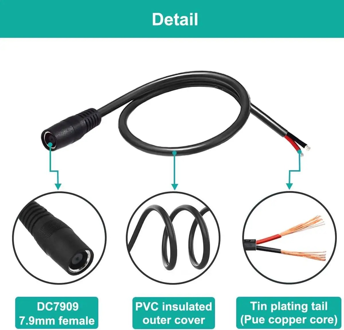 DC7909 Connector DC 8mm 16AWG 30cm 12V 24V DC 7.9mm X 5.5mm Barrel Connector Cable