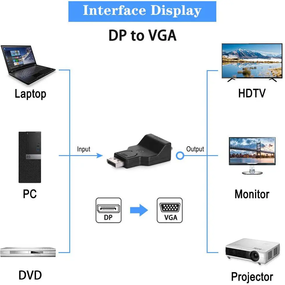 DP to VGA Cable DisplayPort Male to VGA Female Converter Adapter Cable for Laptop PC