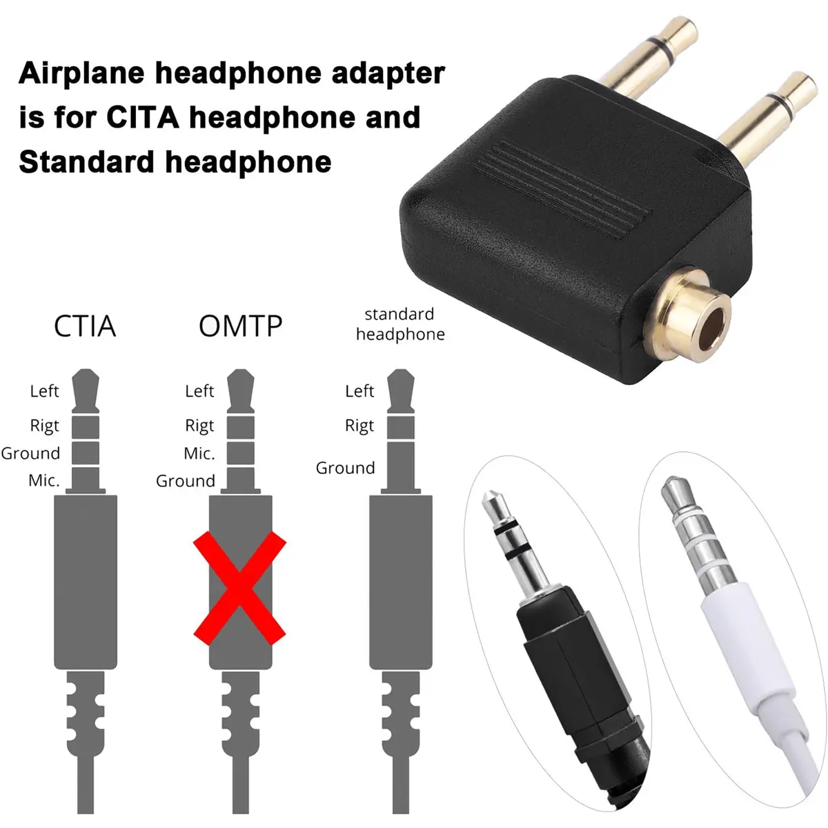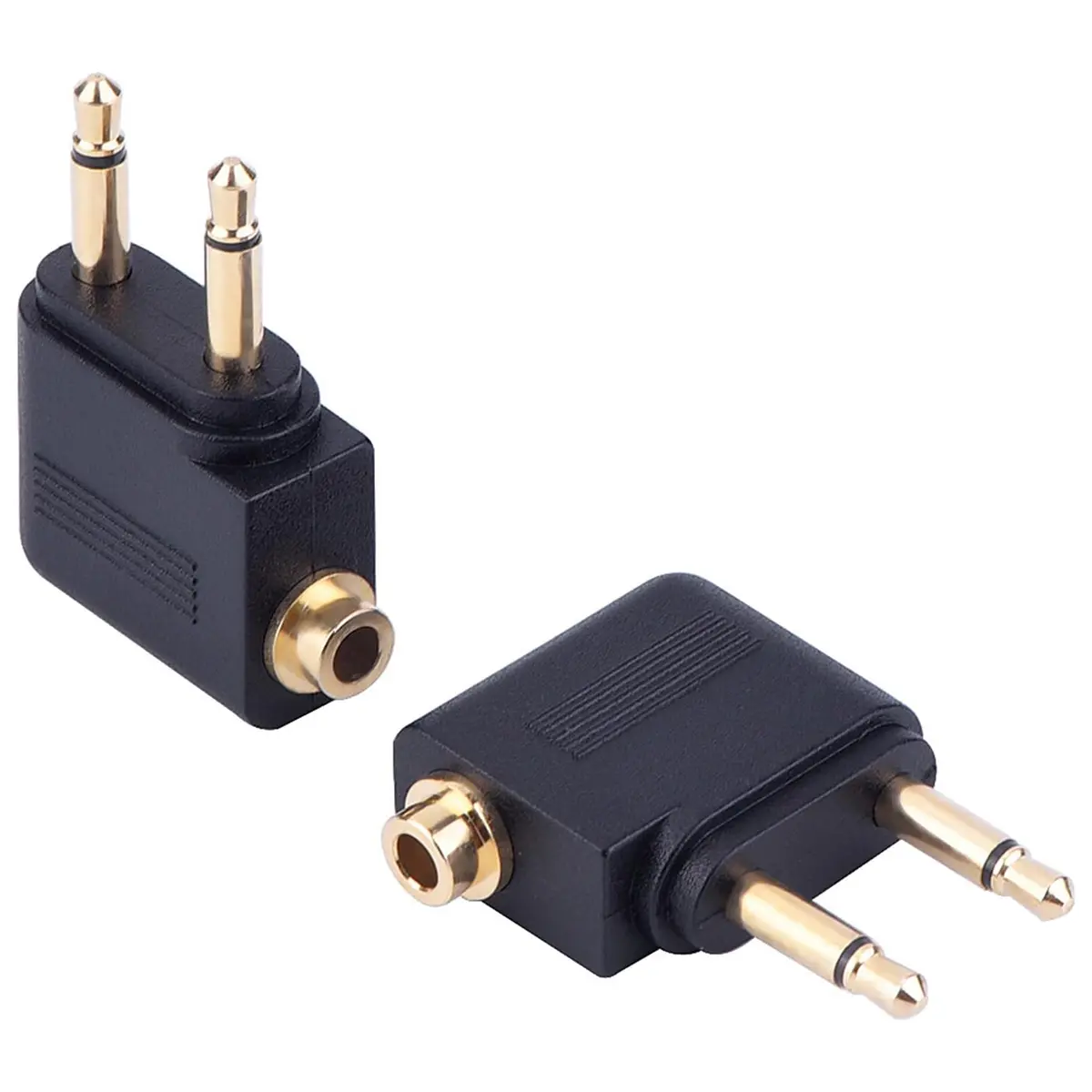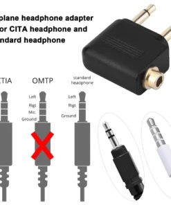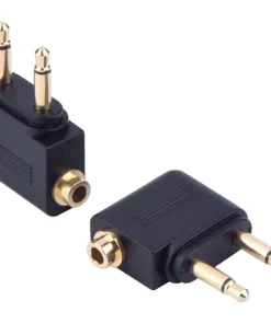 Dual 3.5mm (1/8″) Male to 3.5mm Female AUX Audio Jack Adapter Converter for Using Headphone on Airplane Airline Flight
