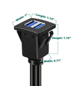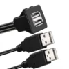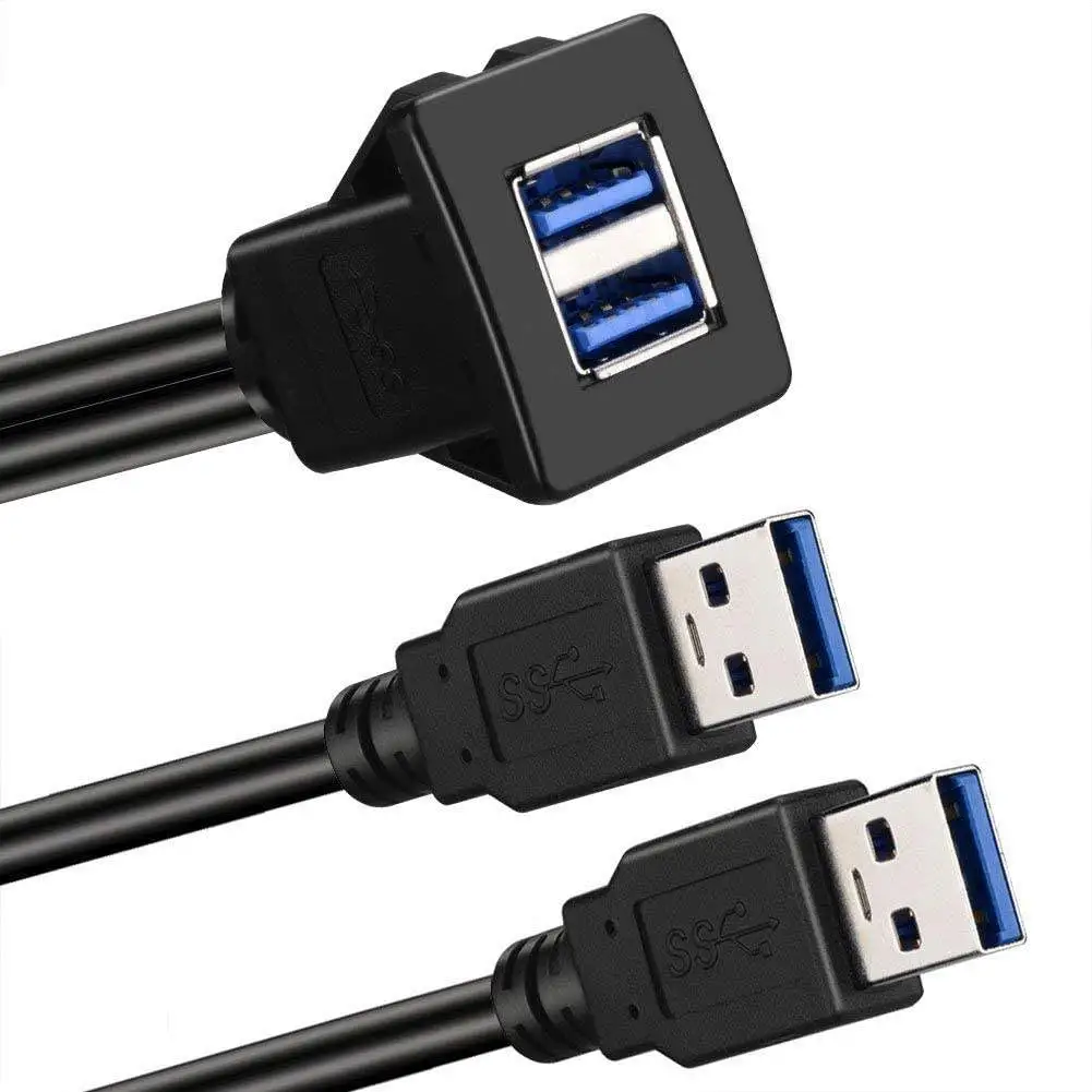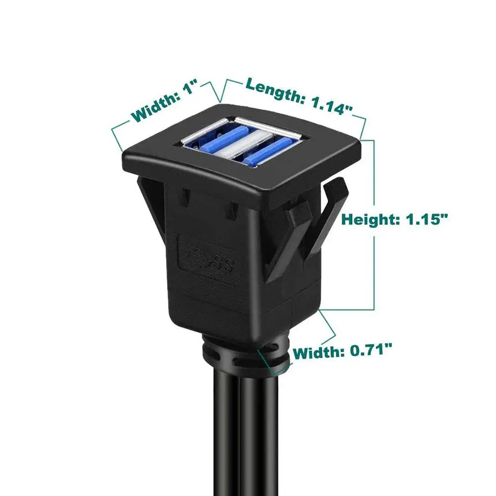 Dual Ports Square USB 3.0 Panel Flush Mount Extension Cable with Buckle for Car Truck Boat Motorcycle Dashboard