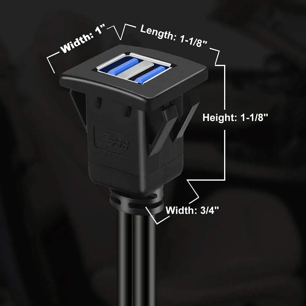 This batige square USB 3.0 panel flush mount cable design for car,boat and motorcycle. Dual USB 3.0 panel cable is made of premium material, it is a nice heavy duty cables. You can use this USB 3.0 dash mount cable as an USB extension for not only a car,boat,motorcycle dashboard, but also a studio set up that you have. The square USB 3.0 car mount flush cable is thick and durable, in normal cases,use an existing hole or cut a hole on your dashboard and clip in the socket to flush mount it to your vehicle’s,boat’s and motors. Ideal for extend and accomplish the data transfer in your car, boat, motorcycle, support very easy access to your accessory inputs. And USB 3.0 backward-compatible USB 2.0. Can use for charge and data transfer. This square USB 3.0 panel dashboard cable is Male to Female,with buckle,very easy to install.