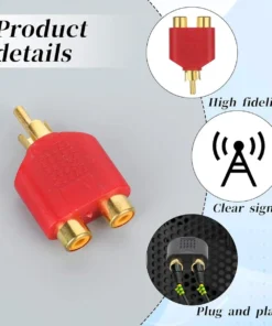 Gold Plated RCA Male to Dual RCA Female Split Adapter