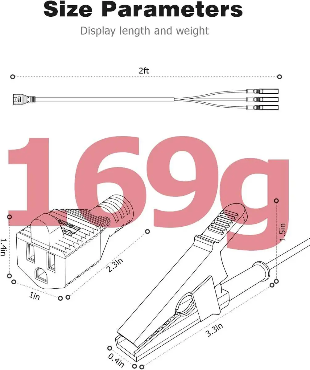 4. This 19″ Hvac adaptor cable with UL certification, 14AWG wire gauge can be used for 120V AC circuit, Large gator clip 0~30Amp. The green wire is the real Earth Wire, which is safer to use, the black wire is the Live Wire, and the white wire is the Neutral Wire.