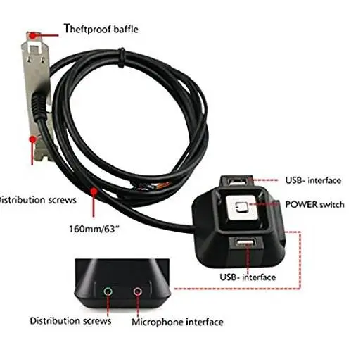 PC Power Button, 6.3″ Desktop PC Switch Button with Dual USB Ports External Power Reset Button Audio Microphone Port Refit