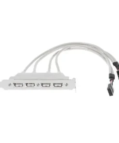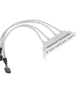 Product Name: Motherboard USB Cable; Connector Type: 4 x USB 2.0 A Female to 2 x Motherboard 9 Pin Header Female Cable Length: 25 cm / 9.8″; PCI Plate Size: 12 x 4 x 2 cm / 4.7″ x 0.16″ x 0.08″ (L*W*H) Main Material: Plastic, Metal; Main Color: white Weight: 84g 4 ports USB 2.0 Type A female to motherboard header adapter cable. Allows you to connect internal USB devices directly to the motherboard header connection.