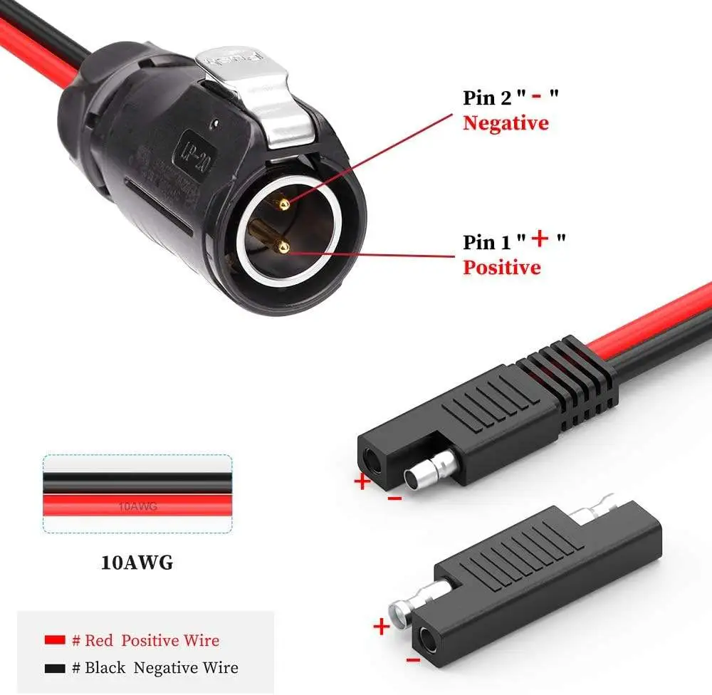 Power Industrial Circular Connector 10AWG 2 Pin to SAE Adapter Cable