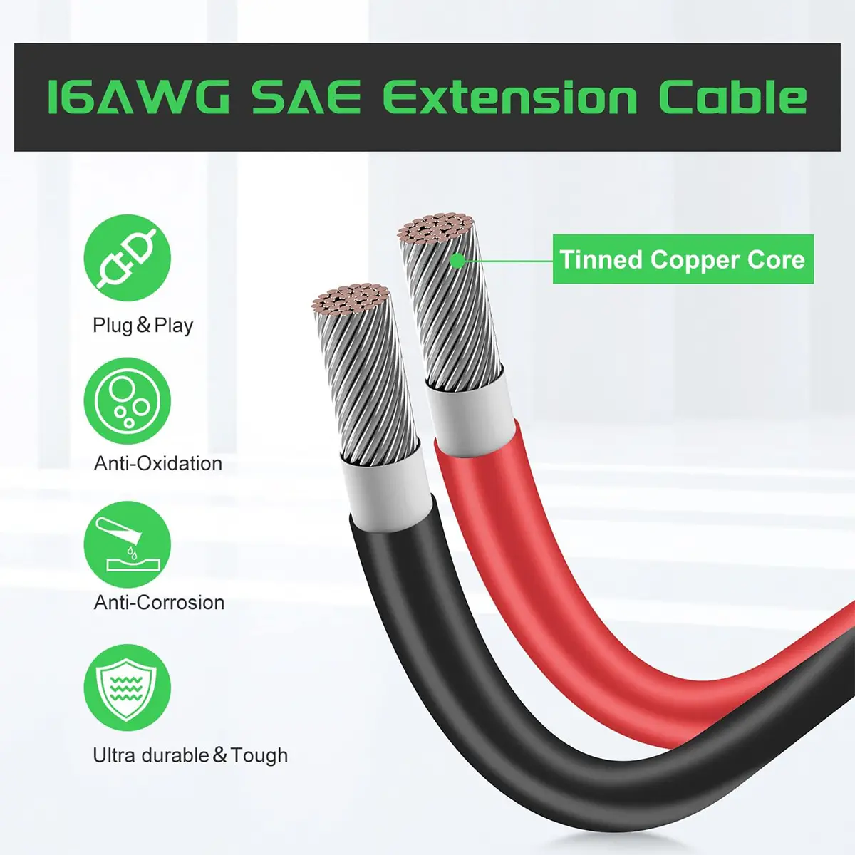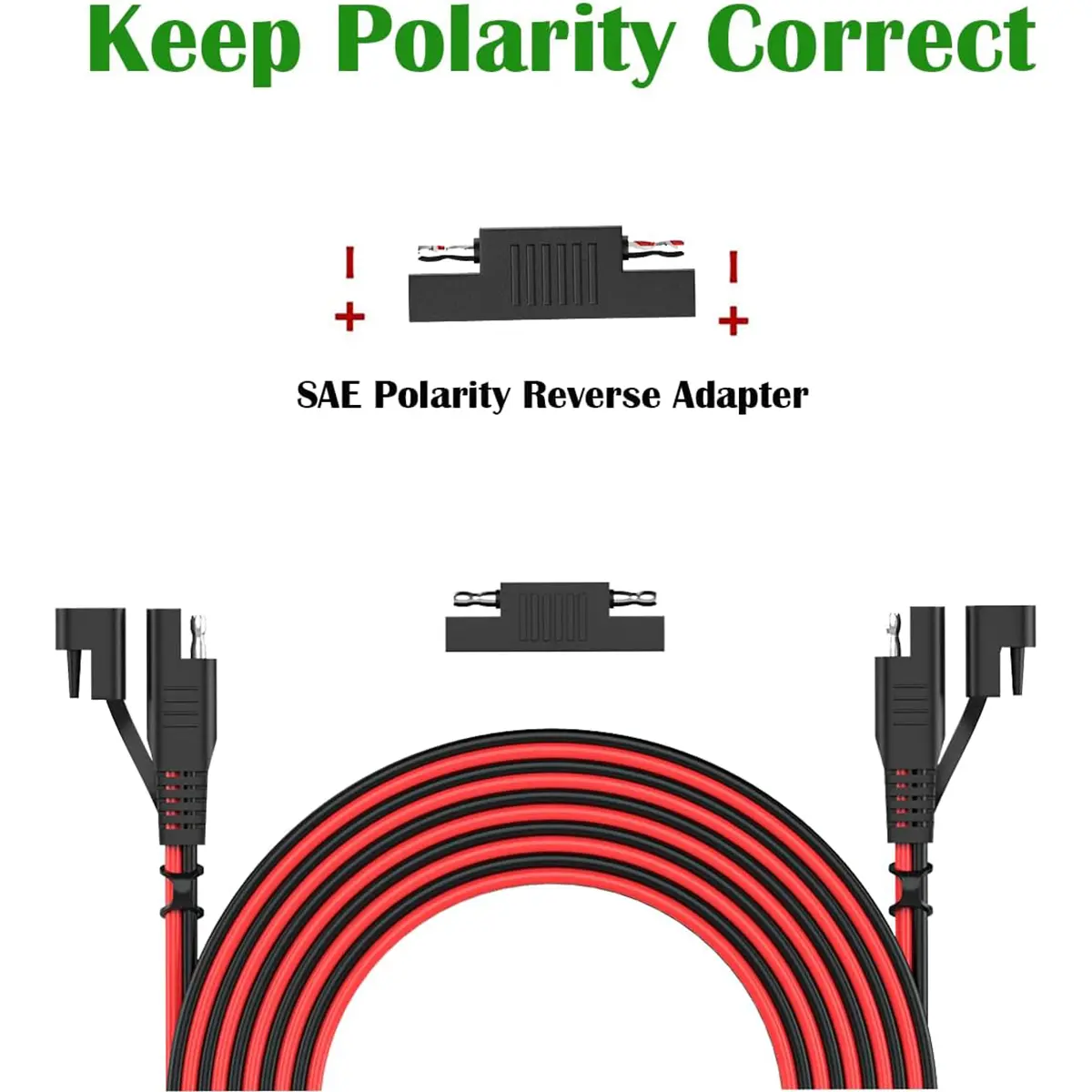 Power SAE to SAE Cable Battery Charger Extension Cable, Solar Panel Extension Wire with SAE Polarity Reverse for Automotive, RV