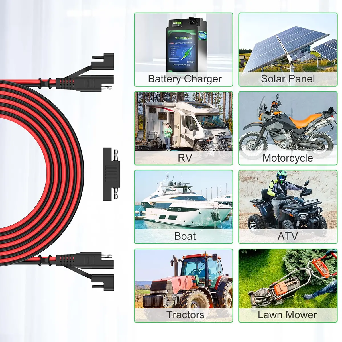 3. WIDE APPLICATION – SAE power extension cable is used to extend and maintain most batteries and chargers with SAE quick release connectors. Widely used in a variety of batteries, solar panels, motorcycles, lawn mowers, ATV, RV, boat, trolling motors, tractors and other equipment that requires SAE plugs.