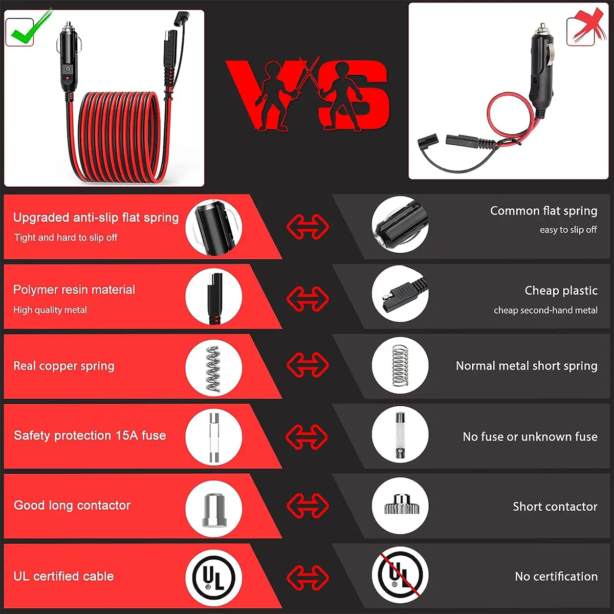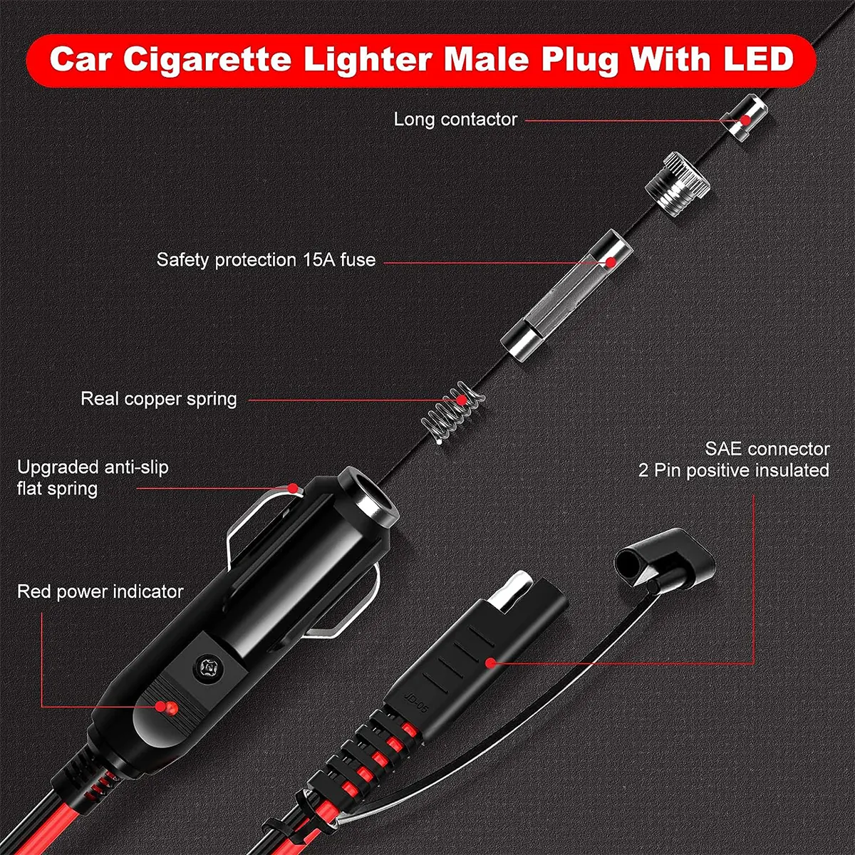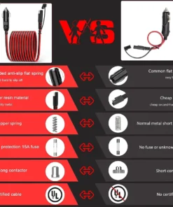 5. Wide Applications – The cigarette lighter plug can be used for all kinds of cigarette lighter sockets on DC 12V/24V vehicles. Widely used in a seat cushion heater, air compressor, electric cooler, vacuum cleaner, air pump, RV refrigerator, car TV, solar battery.