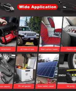 Widely used in a seat cushion heater, air compressor, electric cooler, vacuum cleaner, air pump, RV refrigerator, car TV, solar battery.