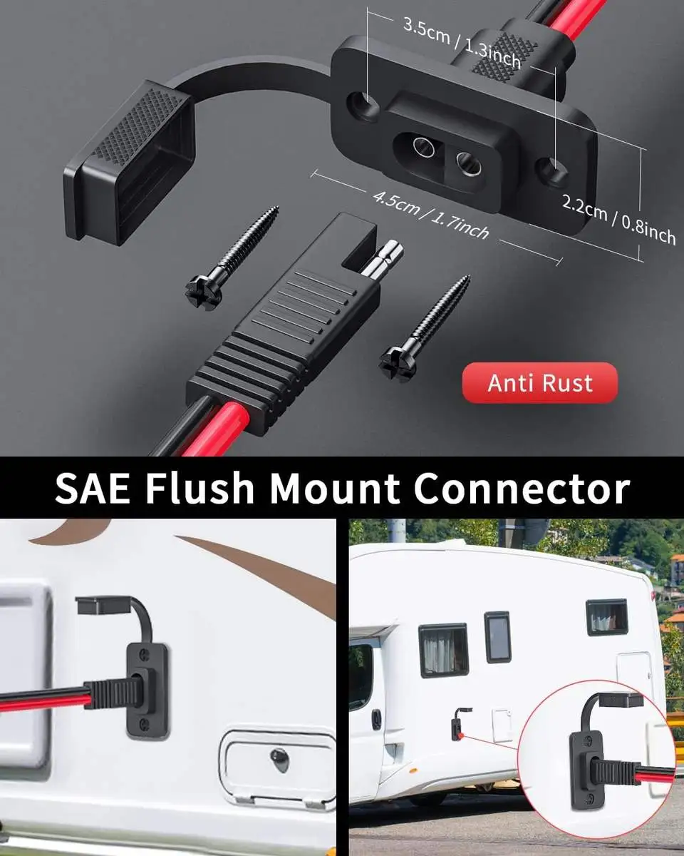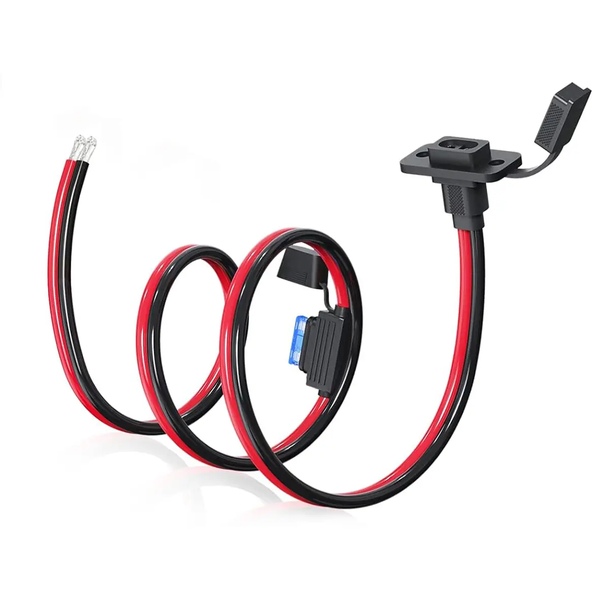 SAE Connector, SAE Socket Solar Sidewall Port Power Cable With 15A Fuse for Solar Generator Battery Charger