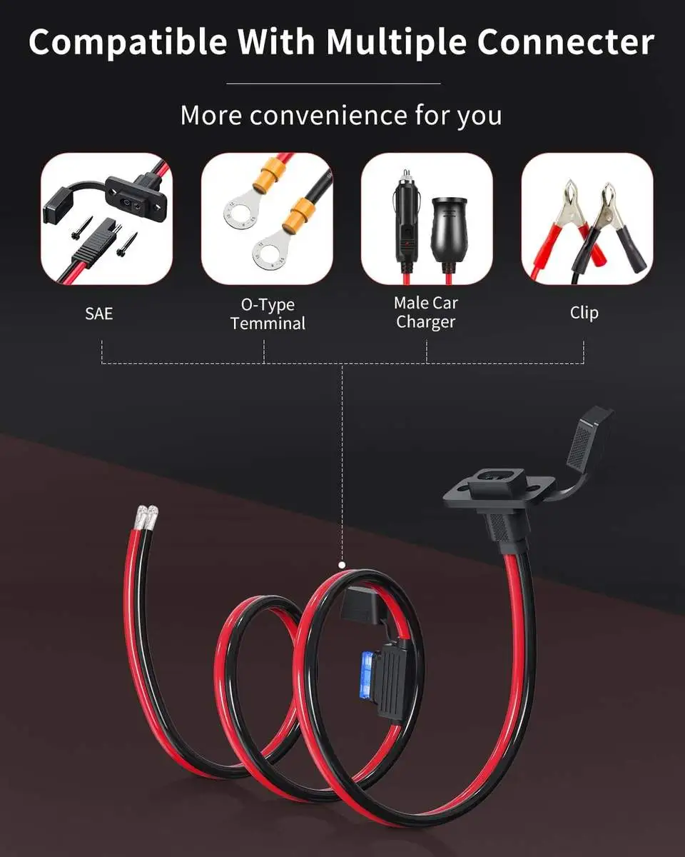 2. Premium Quality SAE Connector Cable – 12AWG UL Certified Wire, Heavy Duty Pure Copper Wire, Double PVC Jacket, Best Insulation Effect, 105°C Heat Resistance, Rated Voltage: 300V.