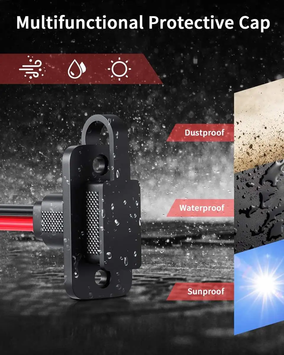 The protective cap protects against dust and rain, keeping the inside port clean and dry when not in use.