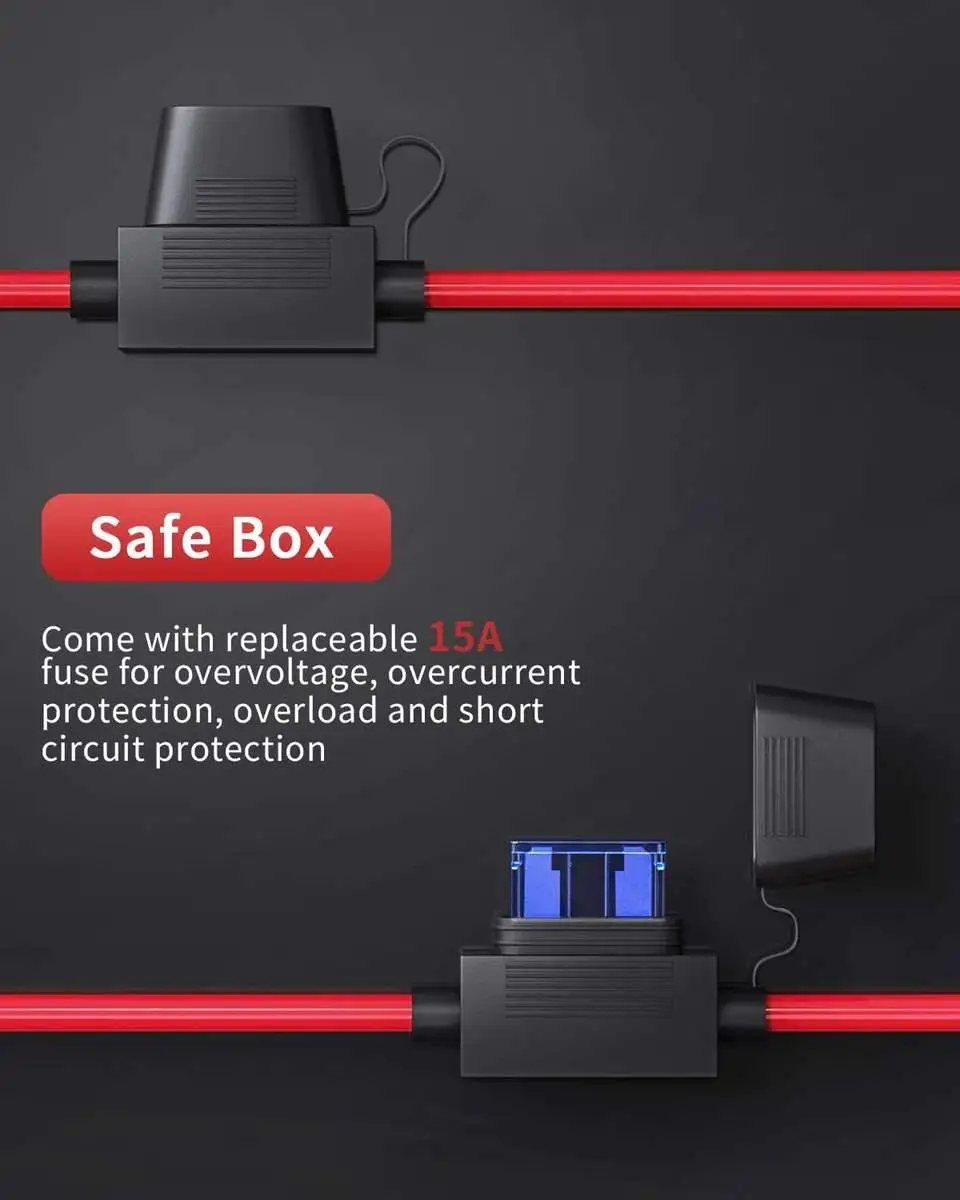3. Upgraded Fuse Protection – Replaceable 15A fuse is included in the safe box for electrical protection, Always protect the equipment from damage caused by excessive current.