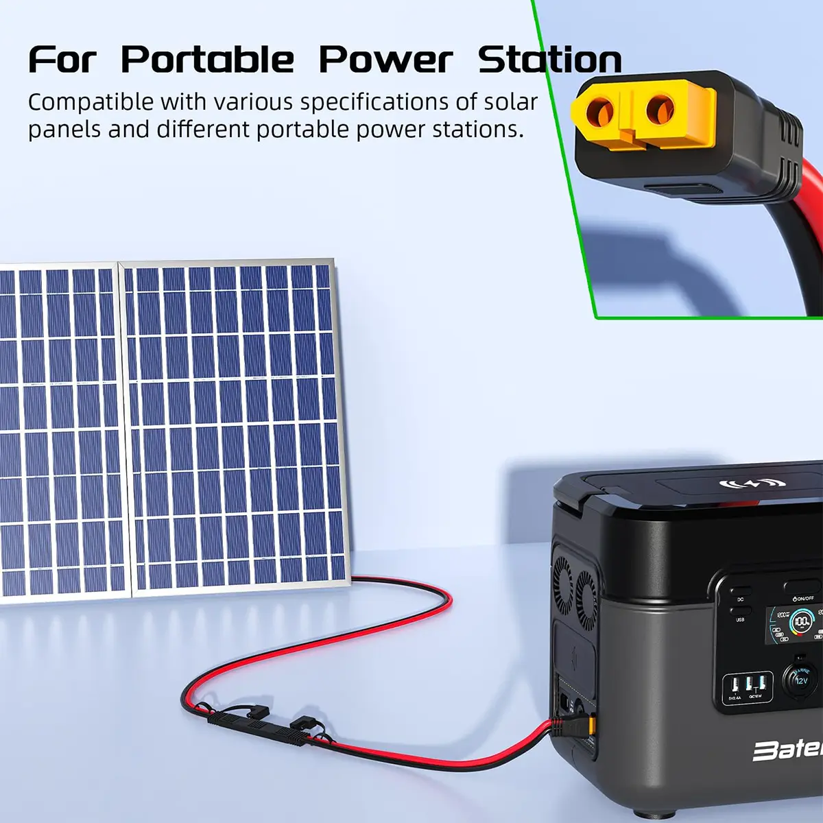SAE Plug XT60 Female Adapter Charger Solar Panel Cable 10AWG Connector Kit for Solar Generator Portable Power Station