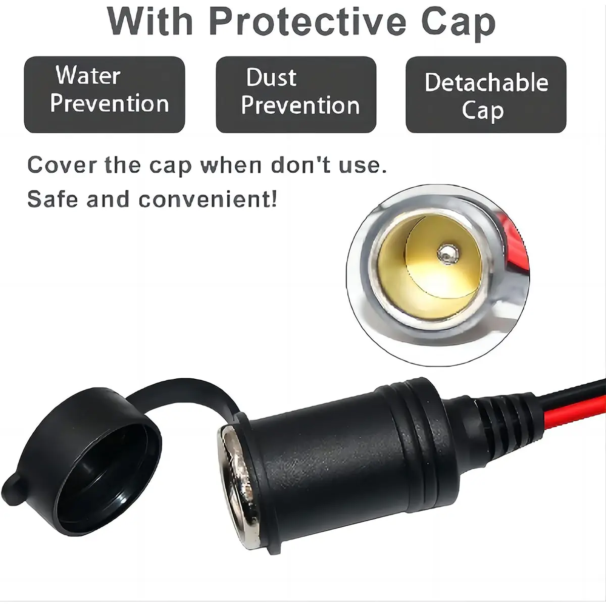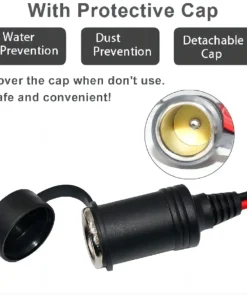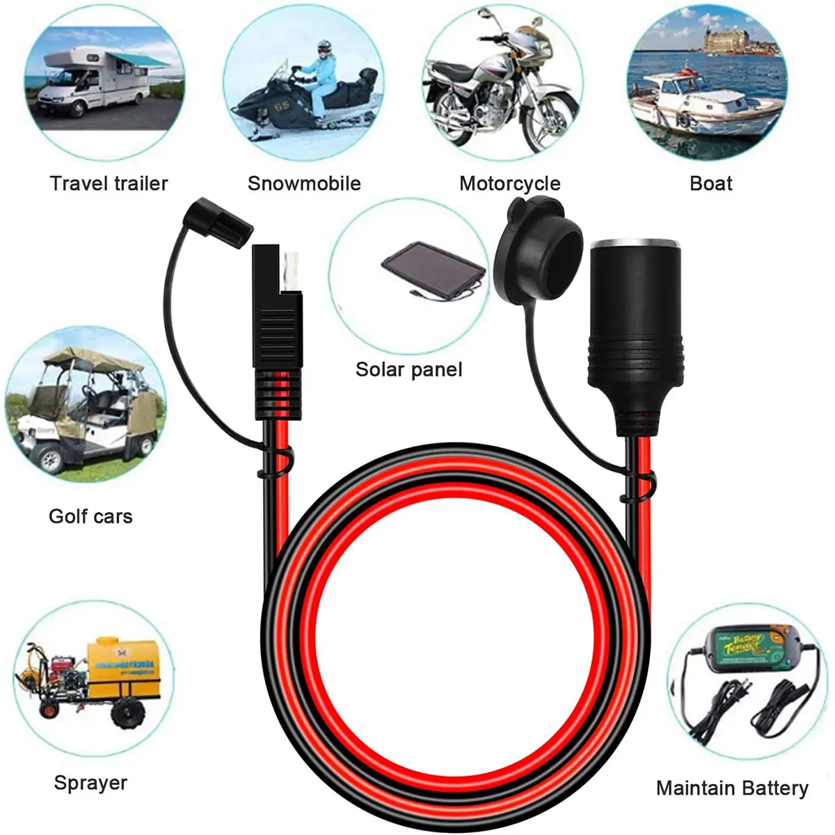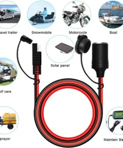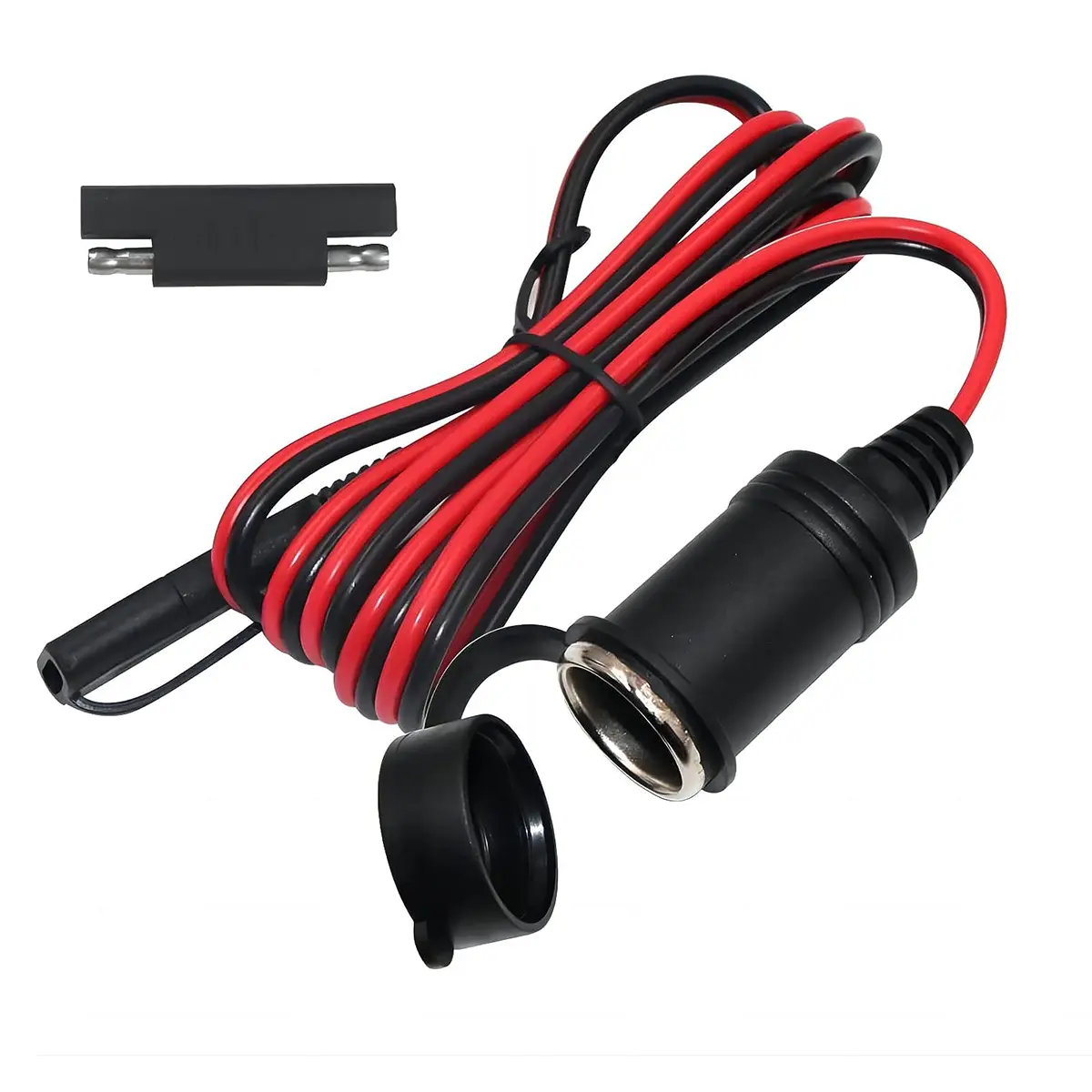 5. 12V-24V SAE to car cigarette lighter female socket power cable The SAE to Motorcycle Female Cigarette Lighter Socket Power Extension Cable is an essential accessory for enhancing your motorcycle’s power capabilities. This adapter cable features an SAE jack and is constructed with SPT-2 16AWG/2C wiring, ensuring durability and efficiency. Equipped with a waterproof cover, this extension cord protects the SAE quick connectors and the 12V cigarette lighter plug from environmental elements, maintaining their cleanliness and functionality. Ideal for use with various vehicles such as motorcycles, ATVs, and RVs, this cable allows for a convenient power source for charging devices like cell phones and GPS units during extended rides.