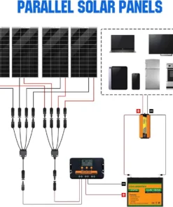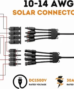 1. Y Branch Solar Connector: 1 male to 4 female (M/FFFF) and 1 female to 4 male (F/MMMM) solar panel connectors, which can connect up to 4 solar panels in parallel.