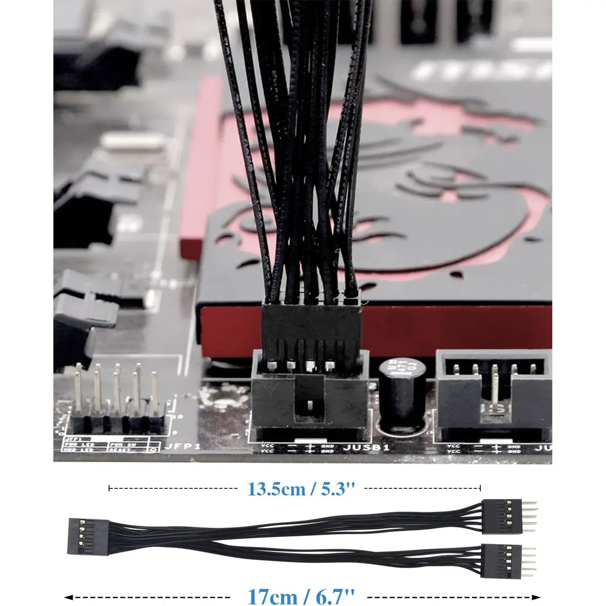 4. USB motherboard splitter: Strictly adheres to standard USB wiring definitions and is designed to prevent incorrect plug insertion; just control the position of the holes, plug in the connector, and it will be ready to use