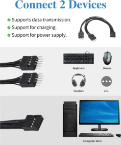 3. USB splitter motherboard cable compatibility: The PC USB 2.0 9-pin splitter is compatible with Windows 10/8/8.1/7/Vista/XP, Mac OS X, Linux, and Chrome OS