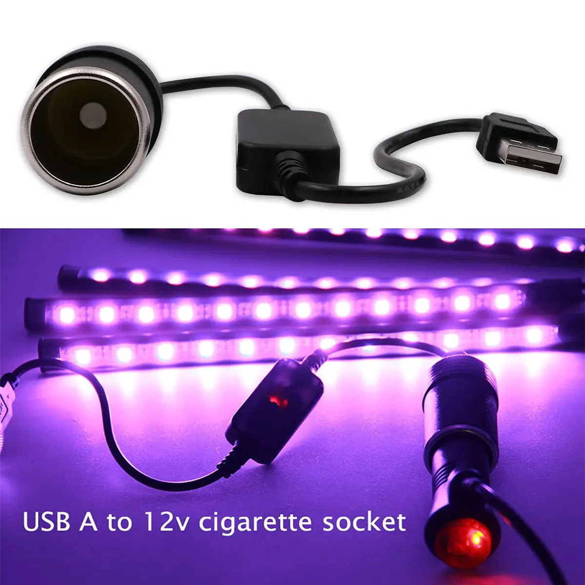 USB A Male To 12V Car Cigarette Lighter Socket Female Converter Cable 8W Max