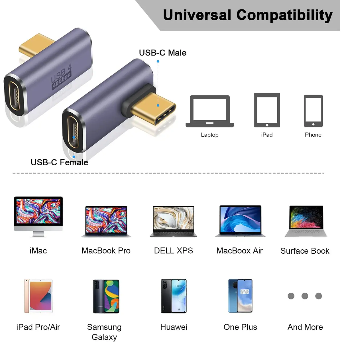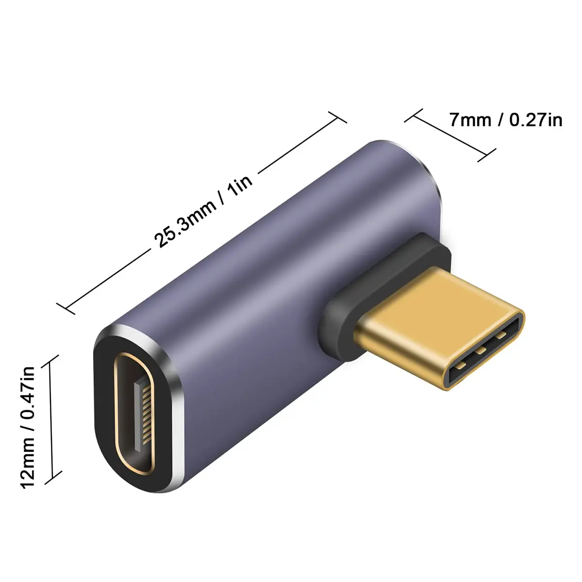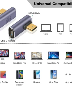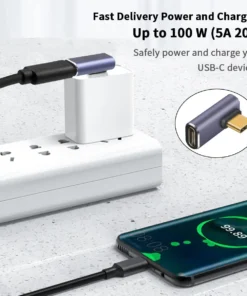 USB C Version 4.0 Right Angle Adapter for USB 4 Cable Support 8K@60Hz Video Display 100W PD