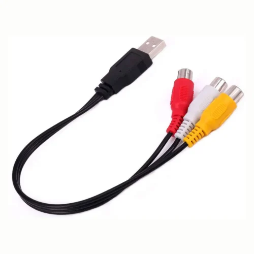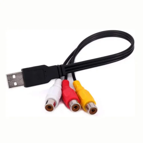 4. AV composite cable USB plug male to 3 RCA female adapter cable. This cable has molded connectors and integral strain-relief for durability and long life