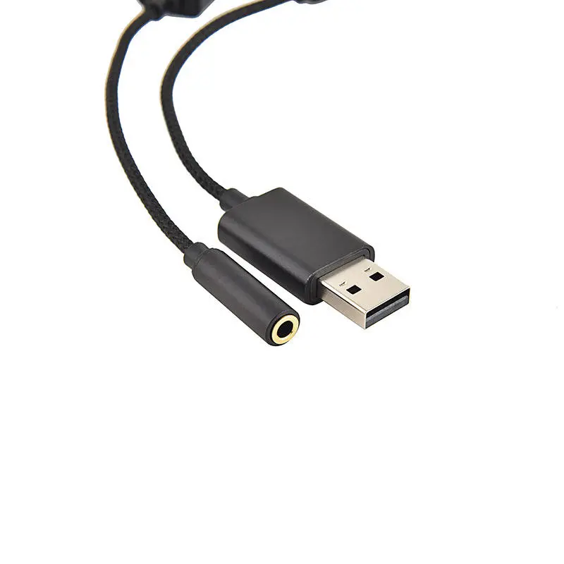 Product name: USB male to 3.5 female computer sound card adapter cable Product function: The audio can be transferred through the computer USB interface, and can be connected to mobile phone headphones or computer headphones to enjoy the music played by the computer, or to connect external speakers. Product applicable equipment: laptop computer Product length: 17cm Product color: blue red black (metal shell color) Product wire material: copper